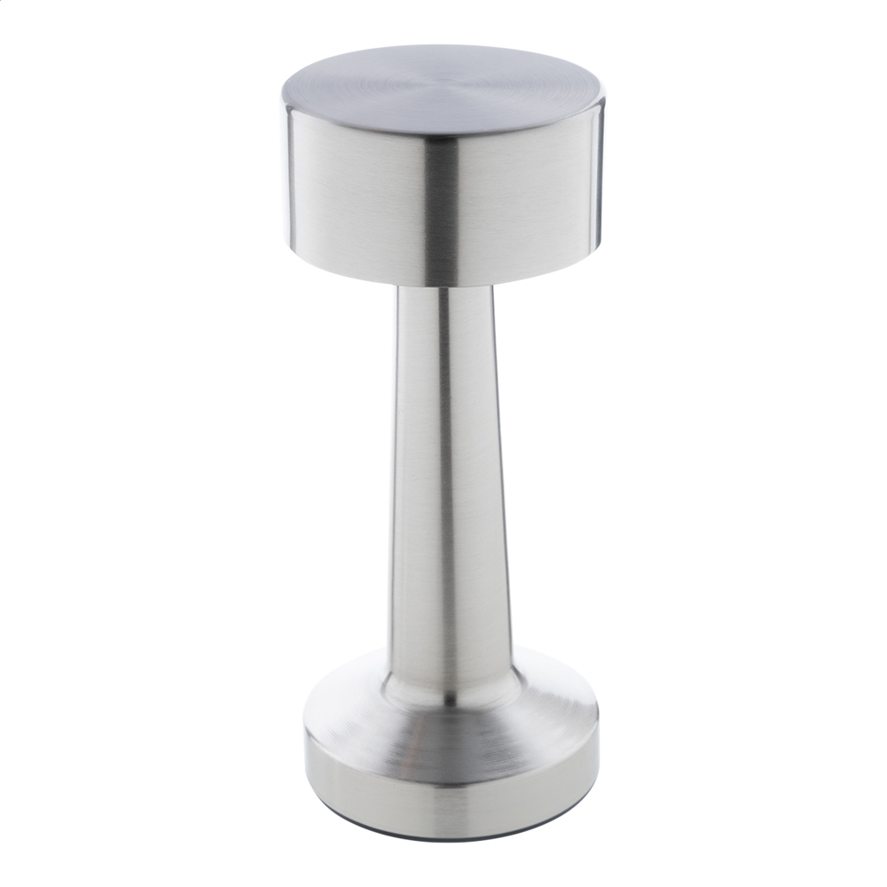 Lampe de table en acier inoxydable avec 24 LED, luminosité réglable et batterie USB rechargeable de 800 mAh. Modes de lumière chaude, naturelle et froide. Câble de chargement USB inclus.