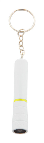 Mini lampe de poche en plastique avec 1 LED et porte-clés en métal. Livrée avec pile bouton.plus