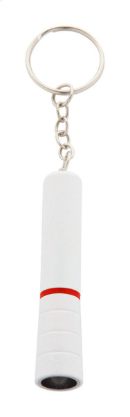 Mini lampe de poche en plastique avec 1 LED et porte-clés en métal. Livrée avec pile bouton.plus