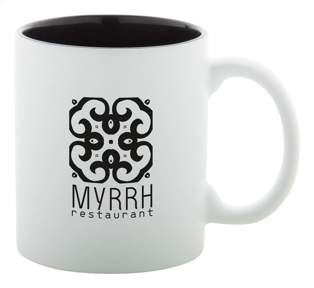 Mug en céramique blanche avec intérieur coloré. 350 ml. Logo peut être gravé à la couleur de l'intérieur du mug. Livré dans une boîte cadeau.
