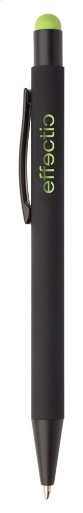Stylo à bille stylet en aluminium avec finition caoutchoutée. Revêtement spécial pour gravure miroir assortie à la couleur du stylet. Encre bleue.