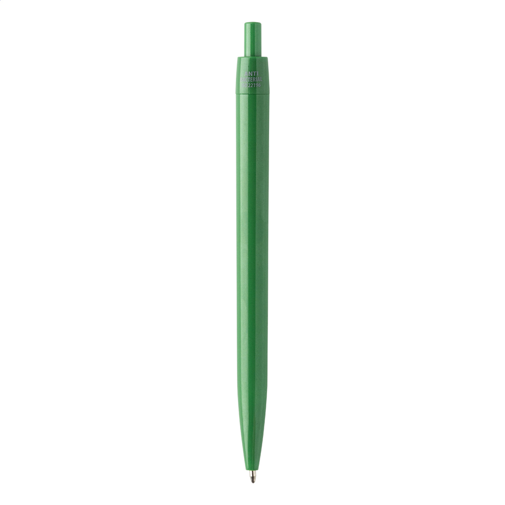 Stylo à bille en plastique avec baril antibactérien. Contient un additif nano-argent empêchant la croissance bactérienne sur le corps du stylo. Avec poussoir encre bleue. Conforme norme ISO 22196: 2011.