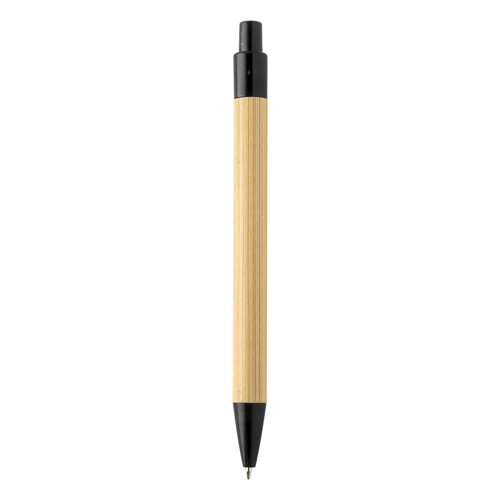 Stylo à bille en bambou avec clip et embout en paille de blé écologique. Encre bleue.