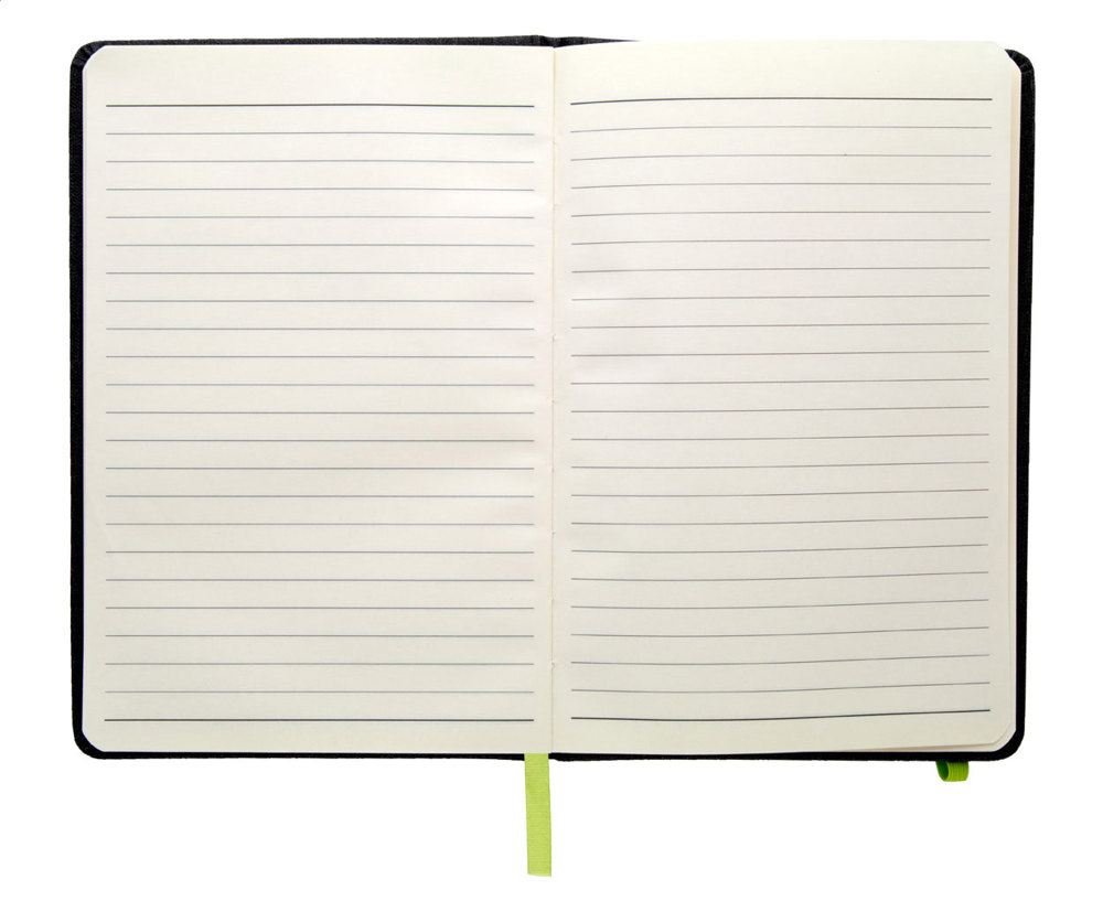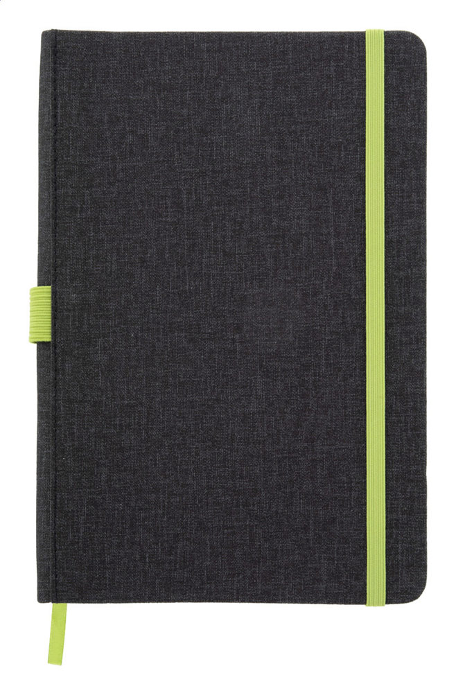 Bloc-notes en similicuir avec marque-page, bande élastique et porte-stylo de couleur assortie. 96 pages lignées, format A5.