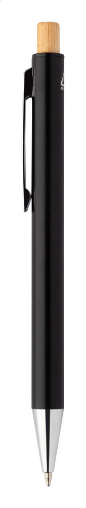 Parure de stylos en aluminium recyclé comprenant un stylo à bille et un porte-mine avec poussoir en bambou. Encre bleue et mines de 0,7 mm. Livrée dans une boîte en papier kraft.