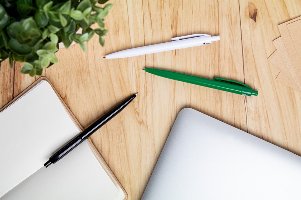 Stylo à bille en plastique ABS recyclé avec recharge bleue.