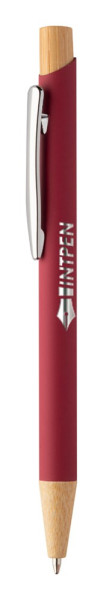 Stylo à bille en aluminium recyclé avec parties en bambou, finition caoutchoutée et clip chromé. Avec revêtement spécial pour la gravure laser miroir. Encre bleue.