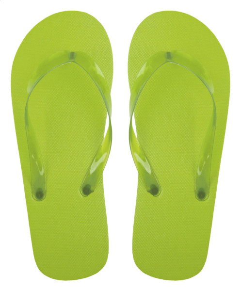 Tongs en PE avec bandes en PVC transparentes de couleur assortie.