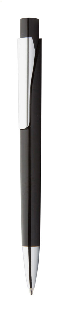 Stylo bille en plastique avec attributs argentés. Encre bleue.