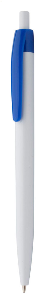Stylo à bille en plastique avec corps blanc et clip de couleur. Encre bleue.