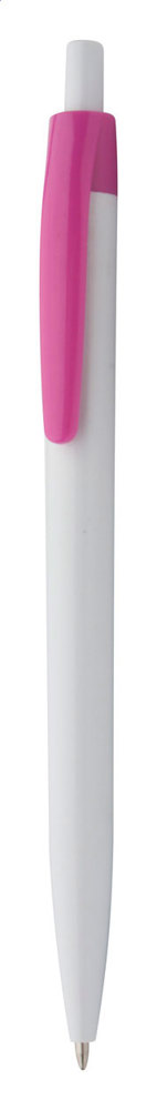 Stylo à bille en plastique avec corps blanc et clip de couleur. Encre bleue.