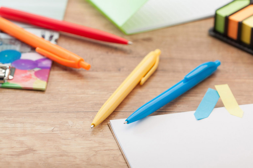 Stylo à bille coloré en plastique, encre bleue.plus