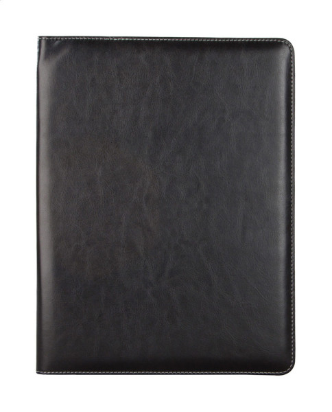 Conférencier A4 en PU, livré avec bloc-notes de 20 pages lignées, passant pour stylo et pochette carte de visite.