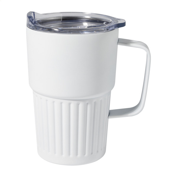Mug thermos isotherme à double paroi en acier inoxydable recyclé avec couvercle en plastique ABS. 470 ml.
