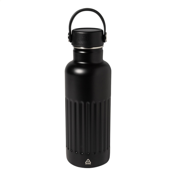 Bouteille isotherme à double paroi en acier inoxydable recyclé avec anse en plastique PP. 500 ml.