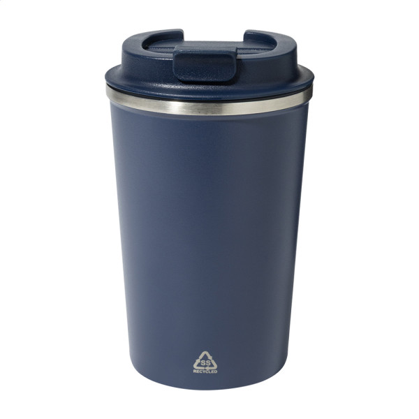 Mug thermos isotherme en acier inoxydable recyclé à double paroi avec bec verseur en PP. 350 ml.