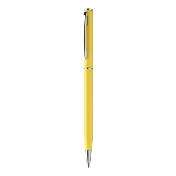 Stylo à bille twist en aluminium recyclé avec accessoires chromés. Encre bleue.