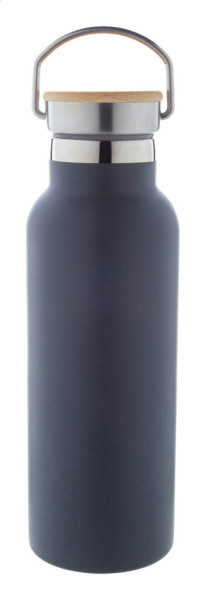 Gourde isotherme à double paroi en acier inoxydable avec couvercle en bambou. 500 ml.