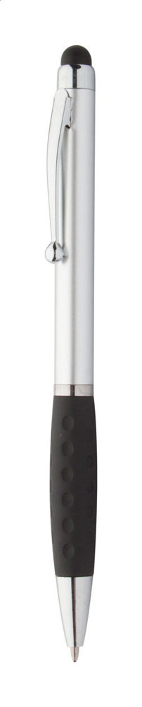 Stylo à bille en plastique avec stylet et grip caoutchouc. Encre bleue.