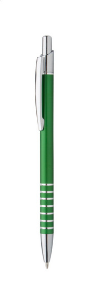 Stylo à bille en aluminium avec anneaux. Clip et poussoir chromés. Encre bleue.