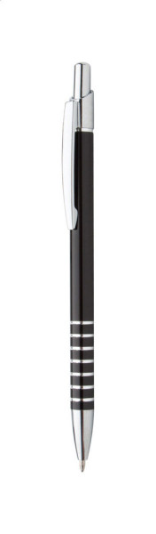 Stylo à bille en aluminium avec anneaux. Clip et poussoir chromés. Encre bleue.