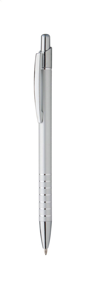 Stylo à bille en aluminium avec anneaux. Clip et poussoir chromés. Encre bleue.