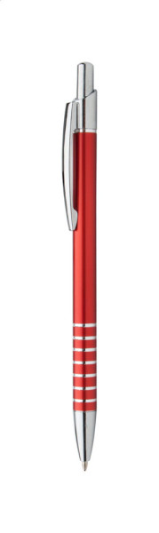 Stylo à bille en aluminium avec anneaux. Clip et poussoir chromés. Encre bleue.