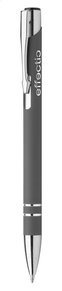 Stylo à bille twist en aluminium avec finition caoutchoutée. Encre bleue. Revêtement spécial pour gravure laser effet miroir.