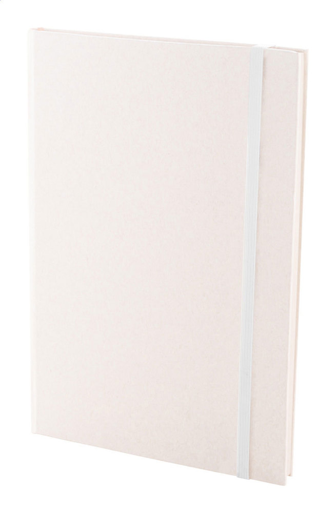 Carnet de notes en carton de lait recyclé et avec couverture rigide, 80 feuilles lignées et élastique de couleur assortie. Format A5.