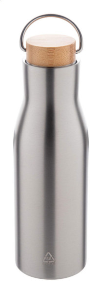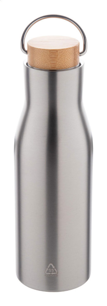 Bouteille isotherme à double paroi en acier inoxydable recyclé avec couvercle en bambou, 500 ml.