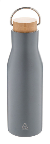 Bouteille isotherme à double paroi en acier inoxydable recyclé avec couvercle en bambou, 500 ml.