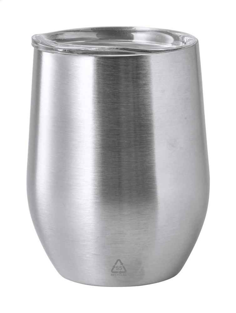 Mug thermos à double paroi en acier inoxydable recyclé avec couvercle en plastique. 350 ml.