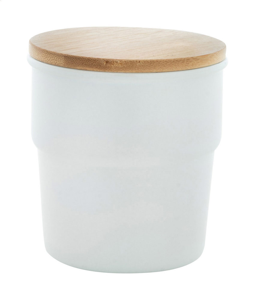 Tasse en céramique de haute qualité avec couvercle en bambou. Avec finition mate à l’extérieur et brillante à l’intérieur. 240 ml. Livré dans une boîte en papier kraft.