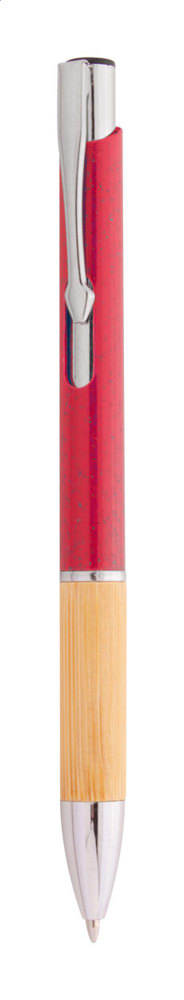Stylo à bille en plastique écologique en paille de blé avec grip en bambou et attributs en métal. Encre bleue.