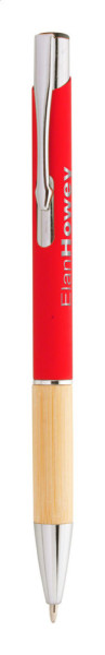 Stylo à bille en aluminium avec grip en bambou, finition caoutchoutée et encre bleue. Revêtement...plus