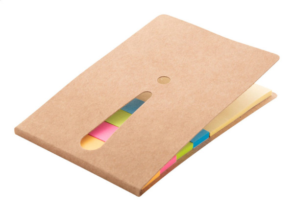 Bloc-notes feuilles adhésives de différentes tailles (25 grandes et 100 petites) en 4 couleurs différentes. Avec un point d'exclamation découpé sur la couverture.