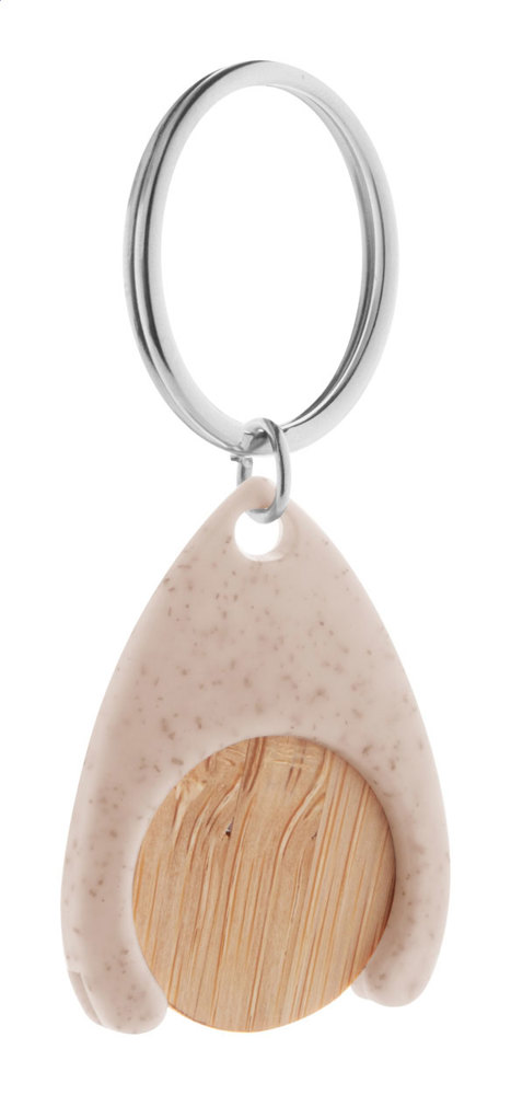 Porte-clés jeton en bambou avec étui en plastique écologique en paille de blé. Format du jeton :...plus