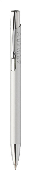 Stylo à bille en aluminium recyclé avec corps caoutchouté et parties colorées avec finition métallique brillante. Avec revêtement spécial pour gravure miroir assorti aux parties métalliques. Encre bleue.