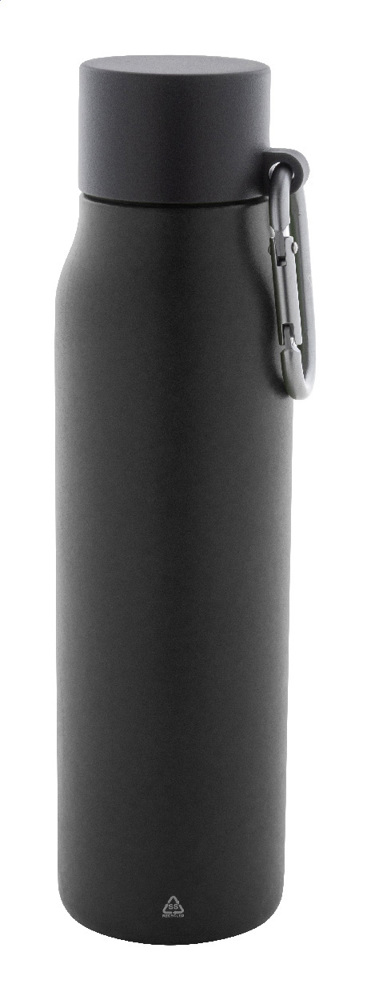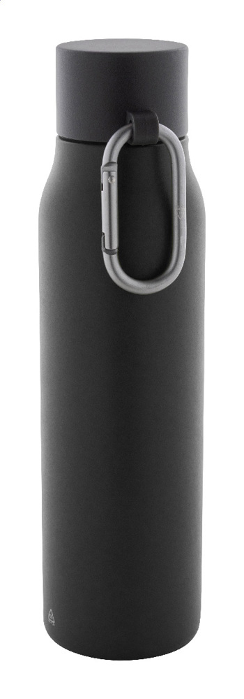 Bouteille isotherme en acier inoxydable recyclé à double paroi avec couvercle en PP et mousqueton en aluminium recyclé. 500 ml.