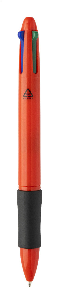 Stylo à bille multicolore en ABS recyclé avec grip en caoutchouc. Encre noire, bleue, rouge et...plus