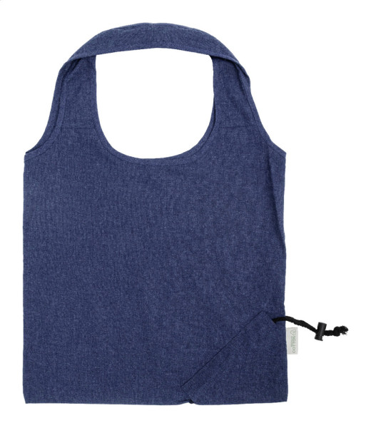 Sac shopping pliable en 70% coton recyclé et 30% polyester RPET, 140 g/m². Avec étiquette distinctive en coton recyclé.