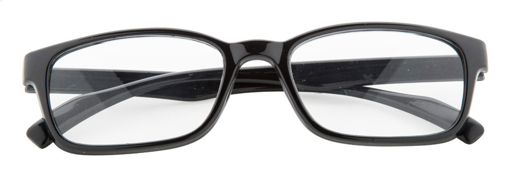 Lunettes de lecture en plastique. Lentilles de dioptrie +1,5. Livrées dans un étui souple.