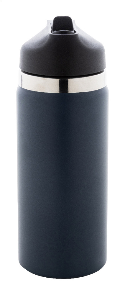 Bouteille isotherme à double paroi en acier inoxydable recyclé avec couvercle à rabat en PP avec poignée de transport et paille intégrée. 500 ml.