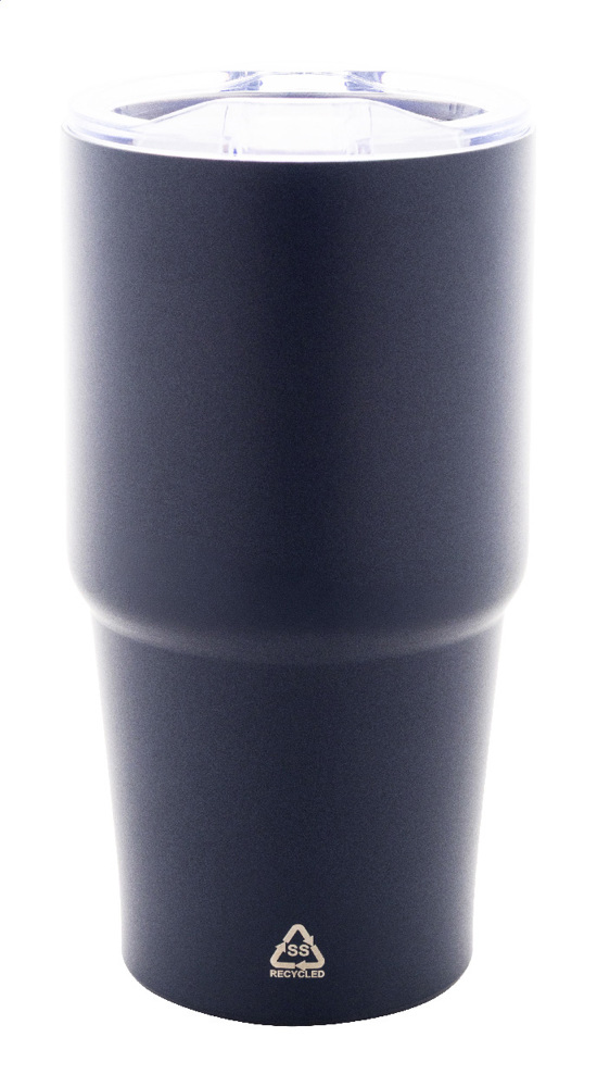 Mug thermos thermos isolé sous vide à double paroi en acier inoxydable recyclé avec couvercle en plastique PS. 600 ml.