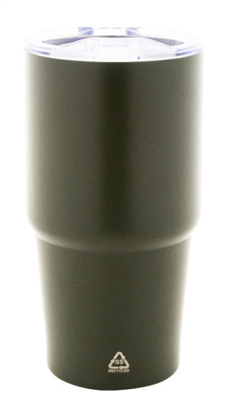Mug thermos thermos isolé sous vide à double paroi en acier inoxydable recyclé avec couvercle en plastique PS. 600 ml.