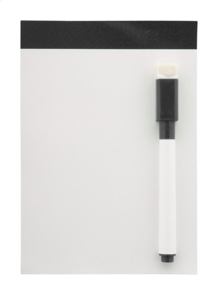 Ardoise magnétique blanche avec marqueur et brosse.