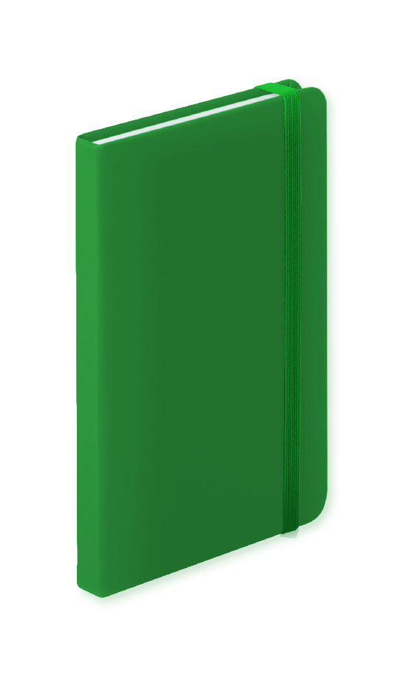 Bloc-notes couverture PU avec 100 feuilles lignées, marque-page et élastique caoutchouté.