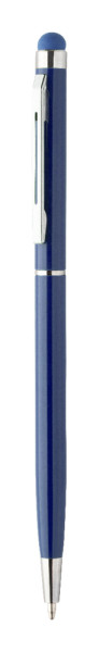 Stylo stylet en aluminium. Corps du stylo et embout tactile de couleur correspondante. Encre bleue.