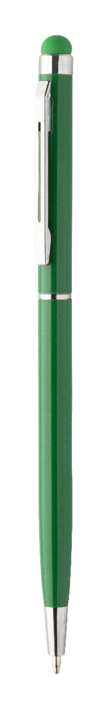 Stylo stylet en aluminium. Corps du stylo et embout tactile de couleur correspondante. Encre bleue.