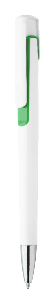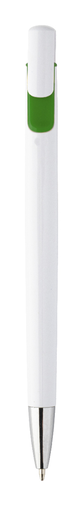 Stylo à bille en plastique avec clip coloré en métal. Encre bleue.